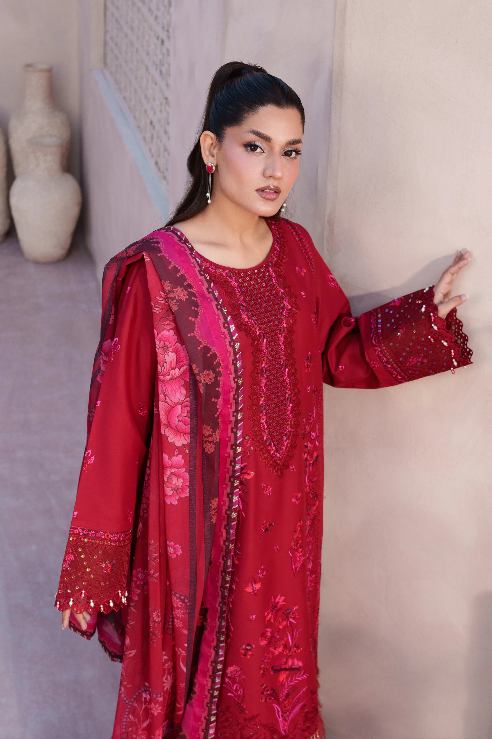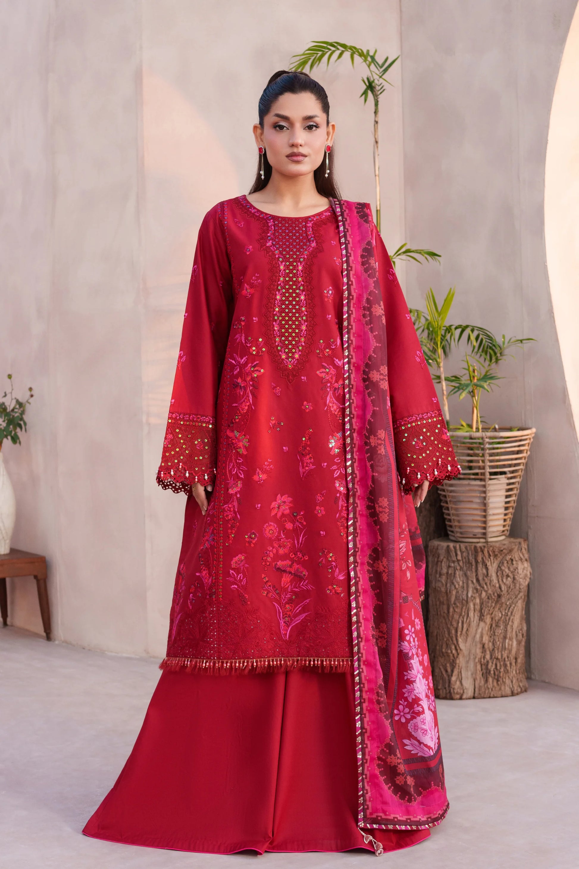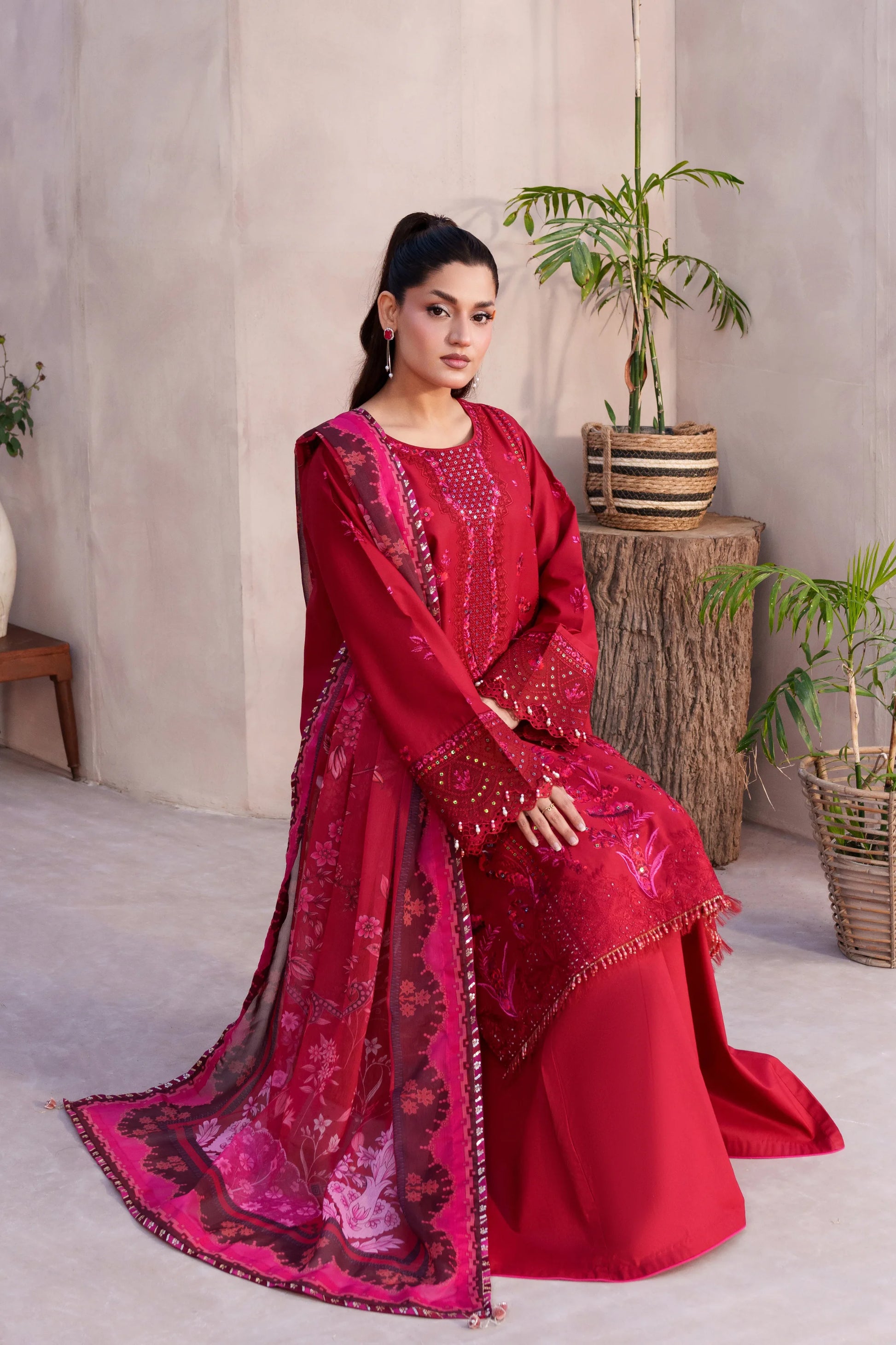 Upgrade your summer wardrobe with this elegant Premium Lawn 3 Piece Suit. Designed with intricate embroidery, perfect for Eid wear and festive gatherings.